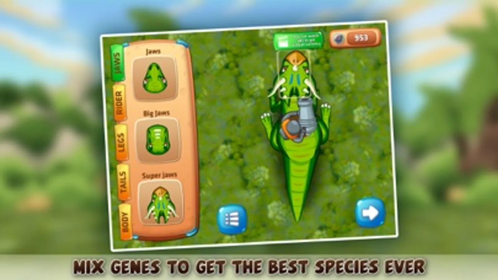 Play with dino genome – mix Triceratops, Velociraptor, Trex, and Ankylosaurus to get the perfect creature! Chase and hunt herbivores, or fight for your life against predators! Collect DNA and unlock new abilities like mighty jaws, razor sharp claws, mace on the tail, spikes, and other elements!