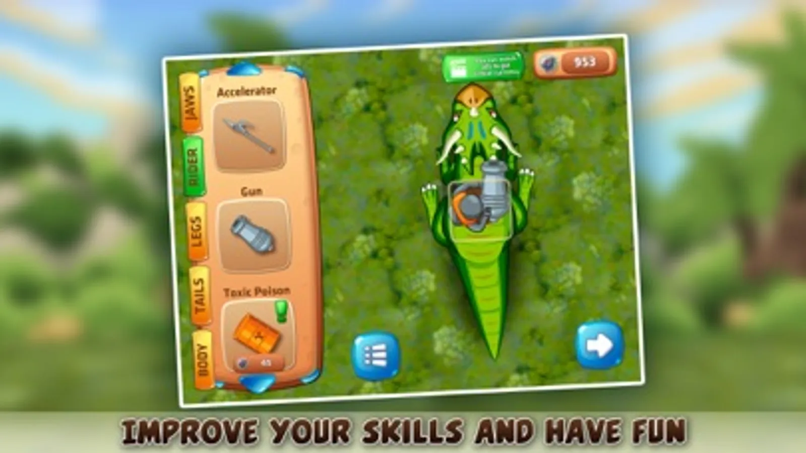 Earn points for each winning to improve your dinosaur even more, or unlock a new one! Try different riders – barbarian, gnome, archeologist, old scientist, cutie girl and others! Each of them uses different weapons – from fire gaff to the battleaxe, so choose wisely!