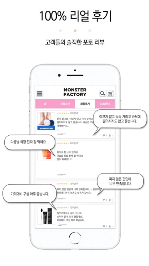 구매했던 상품을 일일이 찾을 필요 없이 앱에 접속하면 자동으로 뜨는 간편리뷰 기능으로 편리함을 더했습니다.