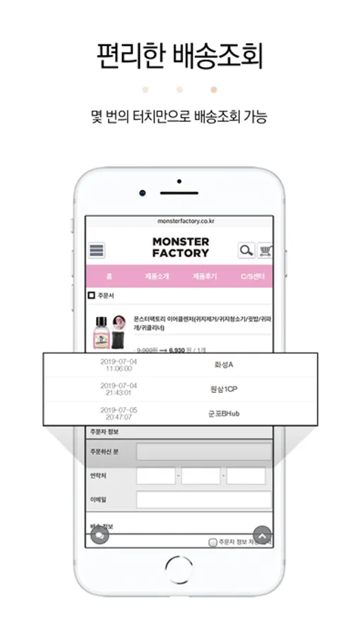 주문한 상품이 지금 어디쯤 이동하고 있는지, 단 한 번의 클릭만으로 조회하실 수 있습니다.