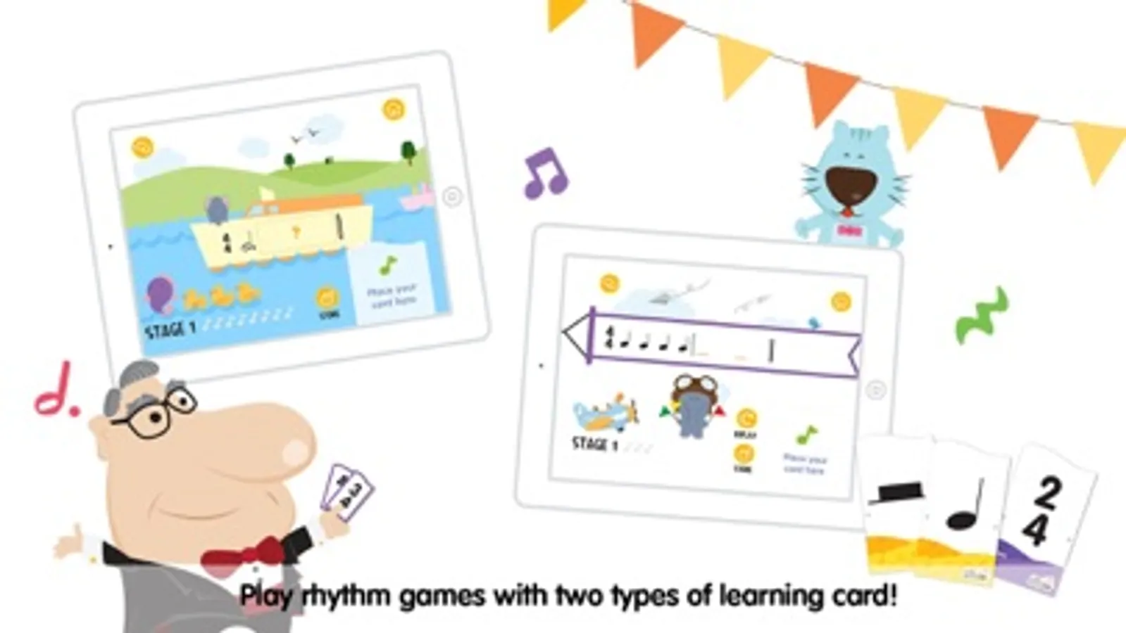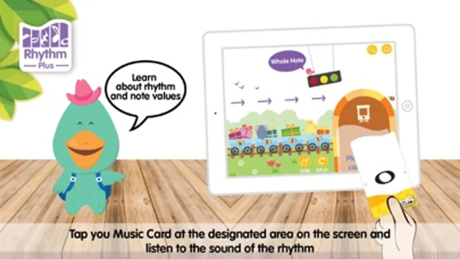Children will learn and recognize the value of different notes and rests, and the beat and image of each rhythmic pattern by tapping the Music Cards on the device.