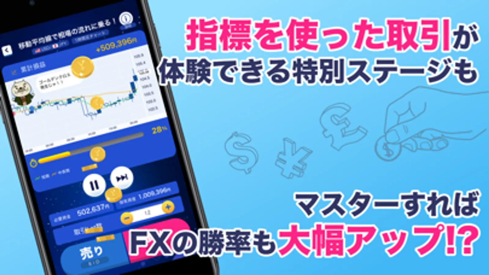 どのようにFXはお金が動くのか、見やすいチャートでリアルに利益とリスクを体験できます。