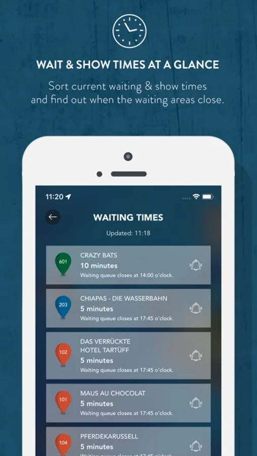 - Find out the current waiting times and get notified when the queue of your favourite attraction shrunk.