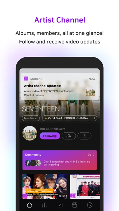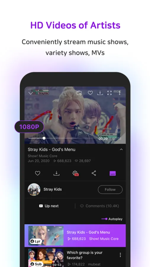 Watch music shows, variety shows, MVs, and Mubeat original content clips in HD!