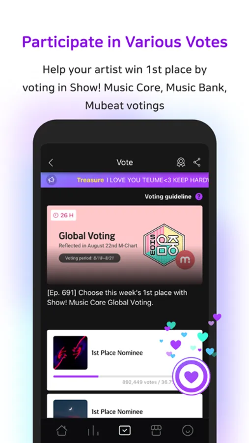 -Fans all over the world can now vote for the winner of Korean music programs like Show! Music Core, various contents in Mubeat Voting, and a THE SHOW TV spot ad!