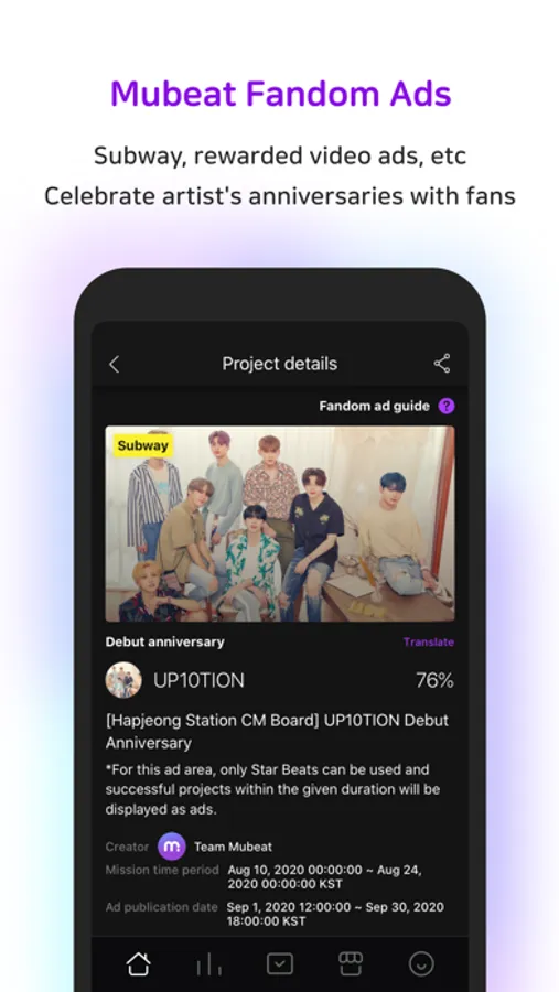 -Celebrate your bias' anniversary with subway ads and rewarded video fandom ads through Mubeat Fandom Ads!