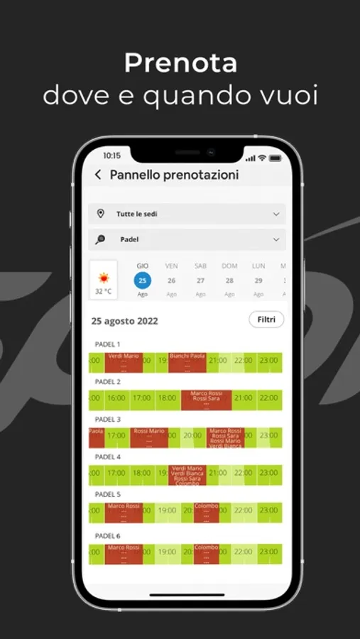 Potrai inoltre accedere ai servizi erogati dal club come la prenotazione online dei campi, i corsi e gli abbonamenti, le quote associative, le attività sportive, le lezioni in programma e molte altre funzionalità.