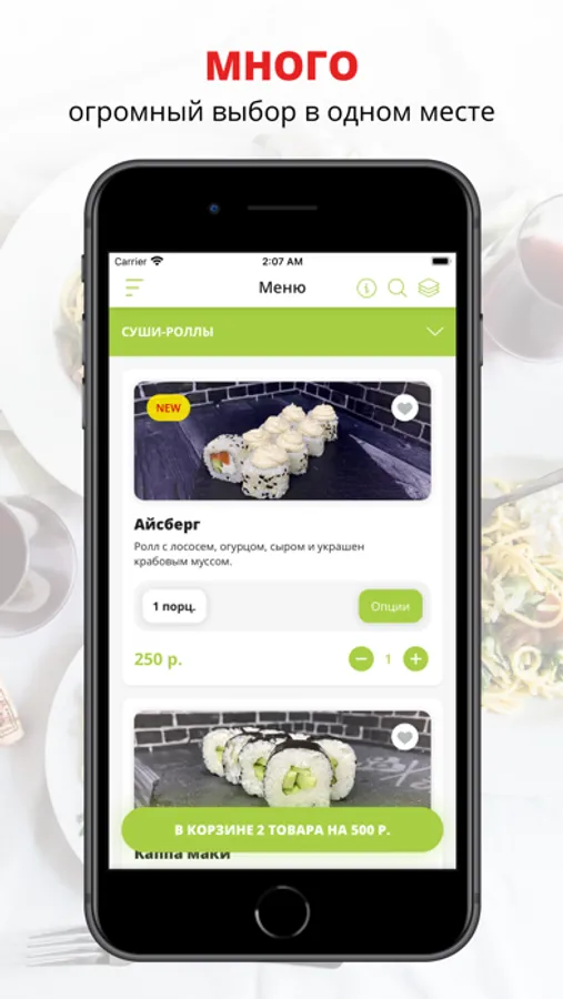Установите приложение, выберите любимые блюда из нашего меню и заказывайте суши, пиццу и многое другое с доставкой на дом!