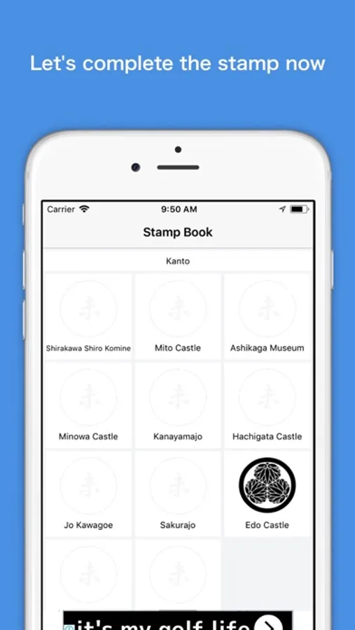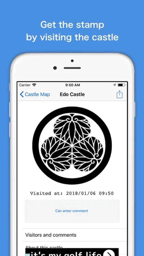 When you visit a castle, you can record the date and time, and you can also get a stamp that caught your castle.