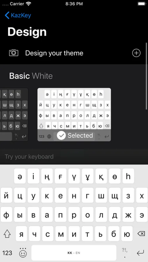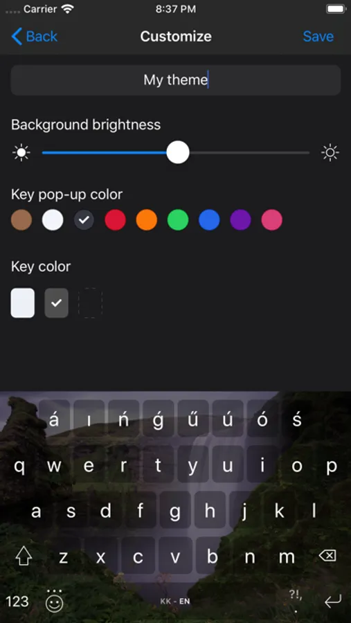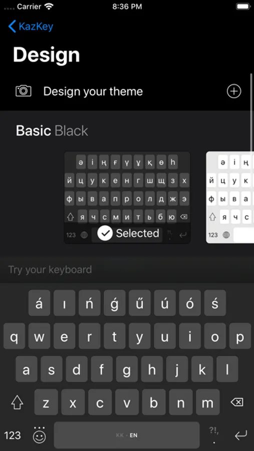 - Және де, әрине, пернетақта дизайнын әр түрлі түске өзгертуге болады