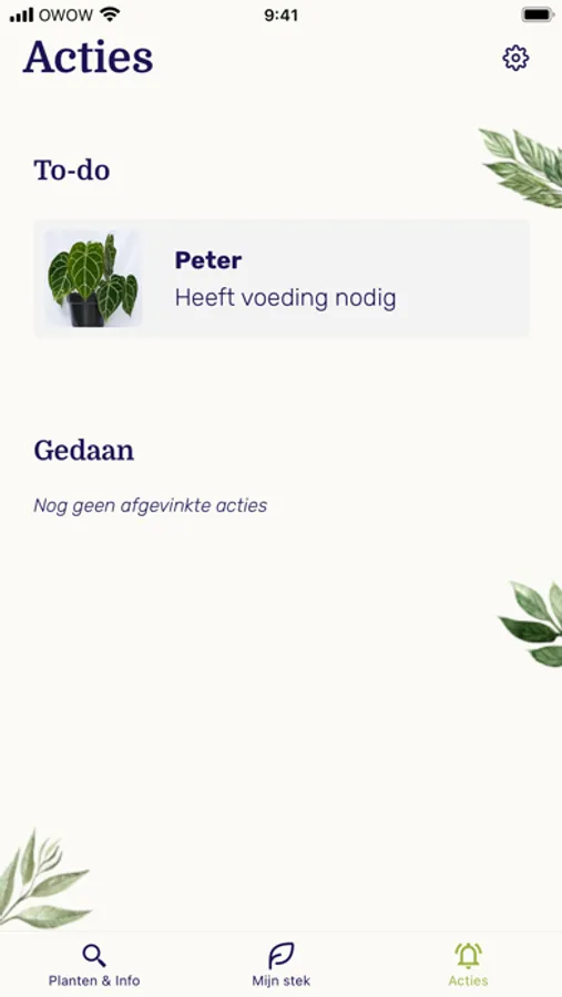 Met de actielijst van Mijn Stek vergeet je nooit meer een plant, zelfs die eenzame bovenop de kast of achter in de border niet. Ontvang herinneringen wanneer je planten water nodig hebben, je ze moet snoeien, voeding moet geven en nog veel meer.