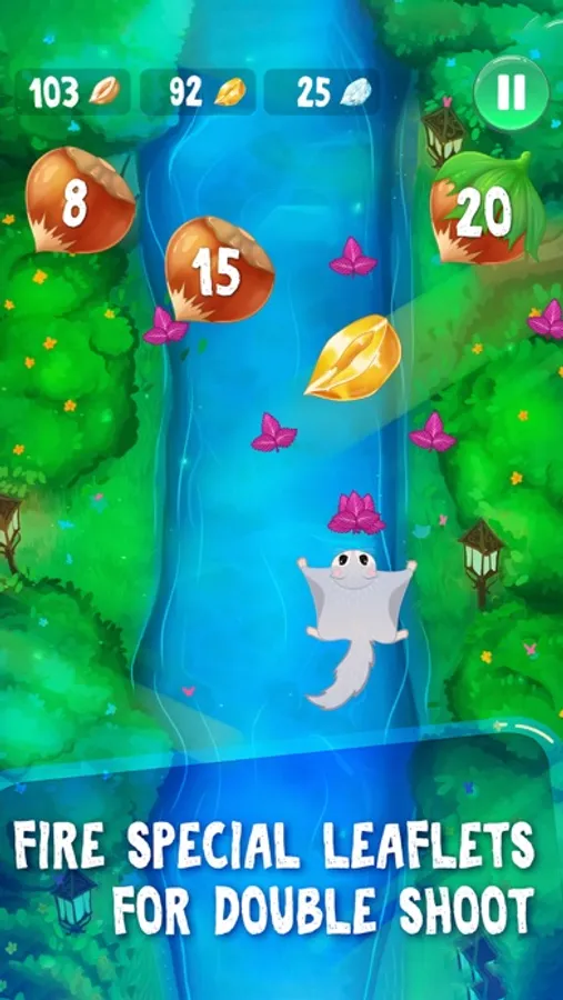 Help flying squirrel to find food. Shoot the nut shells and open the road to go ahead. Use special leaflets to protect yourself or to use double shoot. Reach the highest score and become the nut magnate.