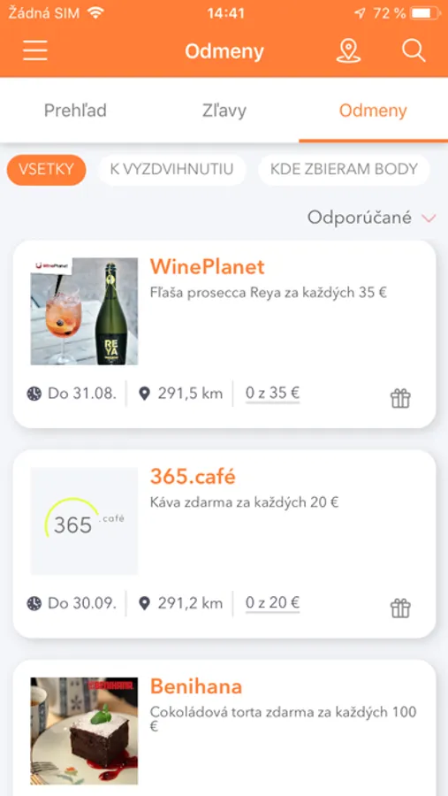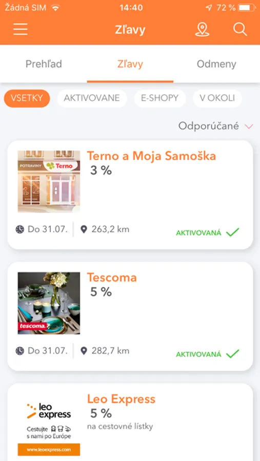 • ihneď vidíte všetky zľavy, ktoré sú práve vo vašom okolí ,