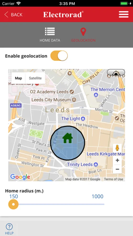 - Geolocation function: Turn your heating on or off when you are inside the influence area.