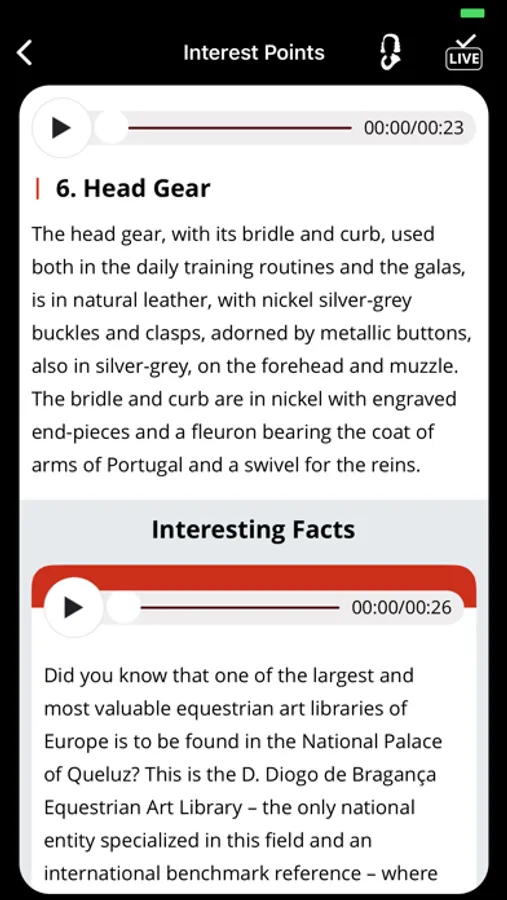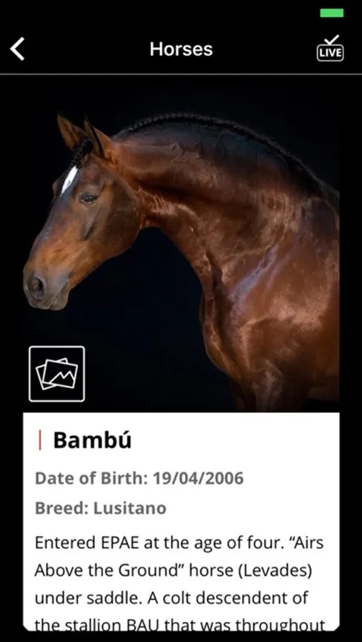 Live mode - Access all of the information about the particular performance taking place and find out about the numbers, the horses, their riders and the exercises underway. This app will tell you just what is happening in front of you!