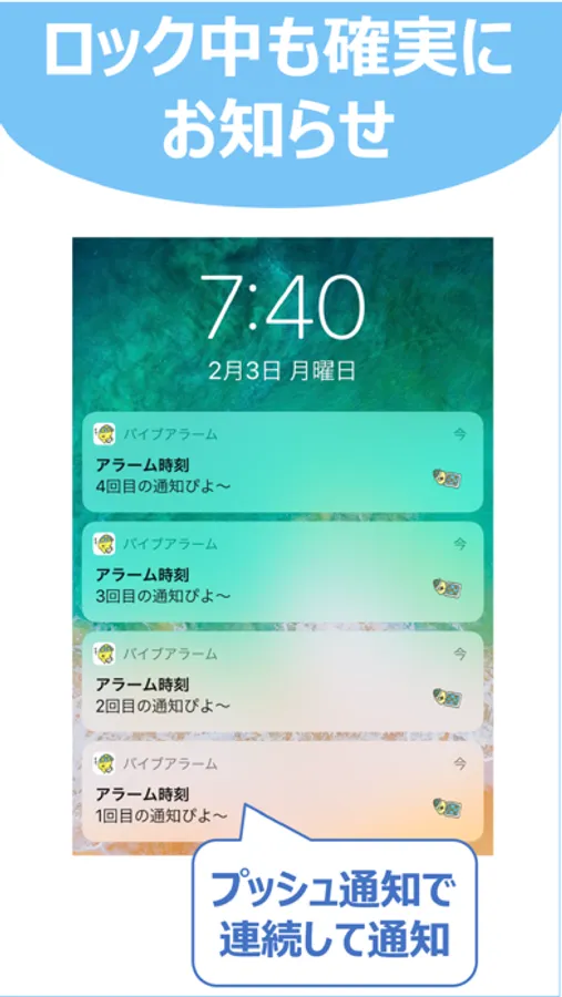 ・アプリがバックグラウンドで作動(もしくは起動がなかった場合)している場合のプッシュ通知での連続通知機能