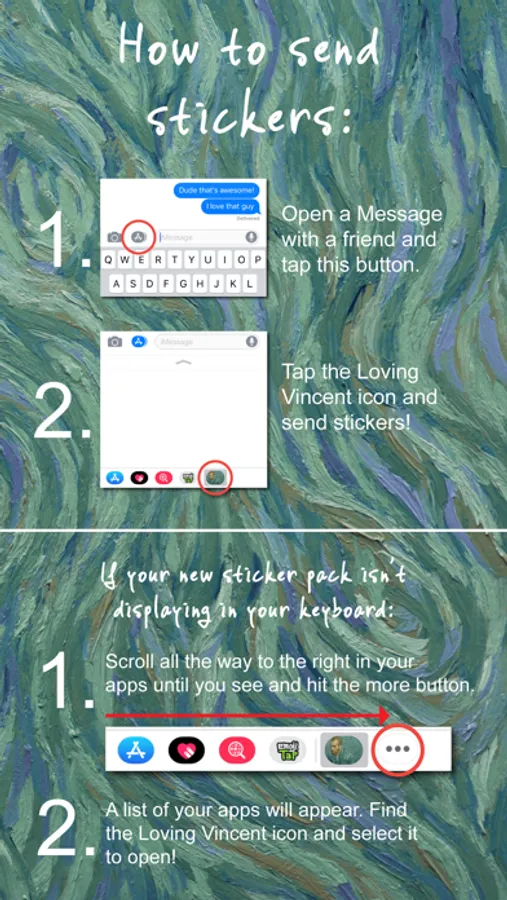 Loving Vincent is the world’s first fully painted feature film. Add your favourite Loving Vincent characters to your messages and photos with our sticker pack.