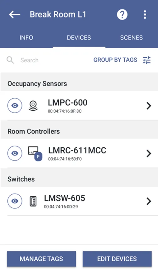 - View room diagnostics (battery levels, mesh health, etc)