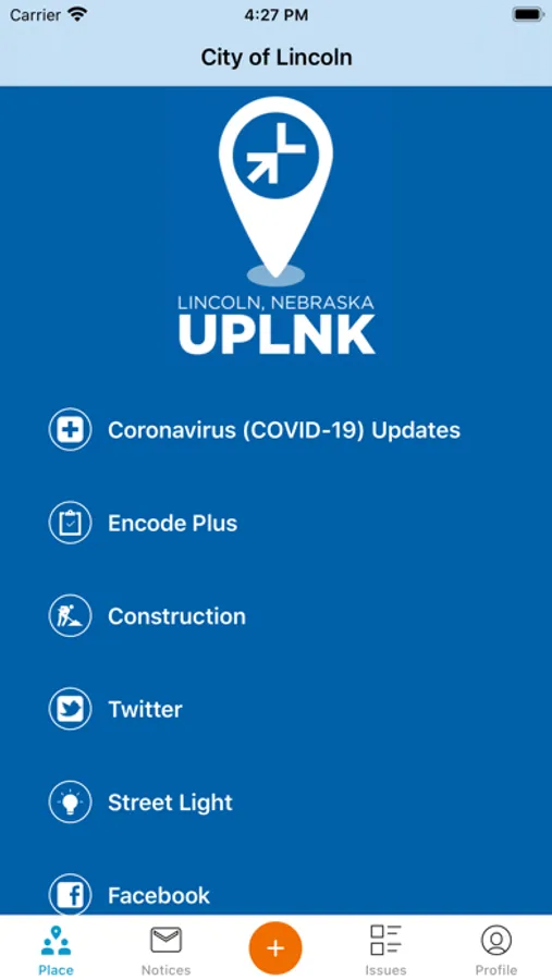 UPLNK is a free app hosted on the SeeClickFix platform. It can be used to report non-emergency quality-of-life issues within the Lincoln, Nebraska city limits and access various City databases. Reported issues such as graffiti, junk cars, potholes and streetlights are routed directly to the responsible departments. Residents can also review issue status, comment, upload photos and more on items they or other members of the community have submitted.