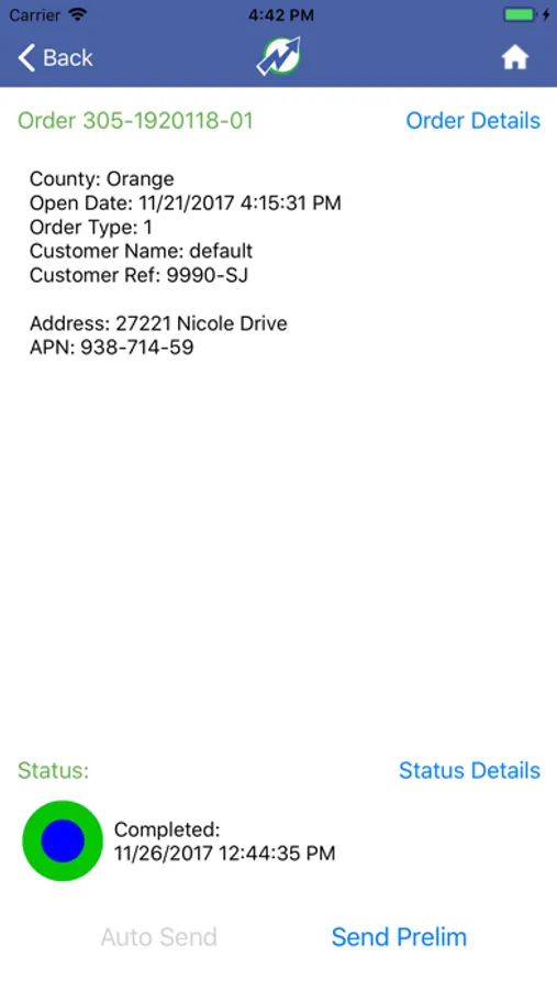 Look up sales and orders based on the order number, property address, customer name, and more. View the status and see exactly where your order is in production. With the app you can also request a copy of the Preliminary Title Report be emailed to an address that you specify.