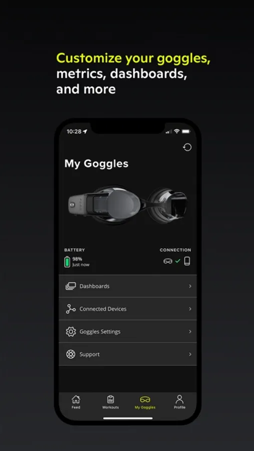 4. CUSTOMIZE YOUR GOGGLES. Choose what metrics to see while you swim, after turns, and during rest. Set up multiple configurations and swap between them based on the goals of your workouts. Options include split times, stroke rate, stroke count, and pace per 100.
