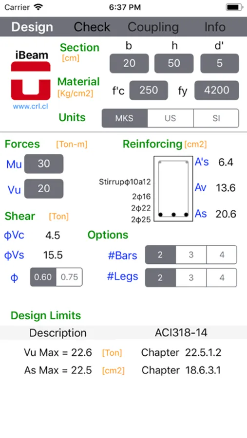 iBeam is an iPhone application for designing reinforced concrete beams.