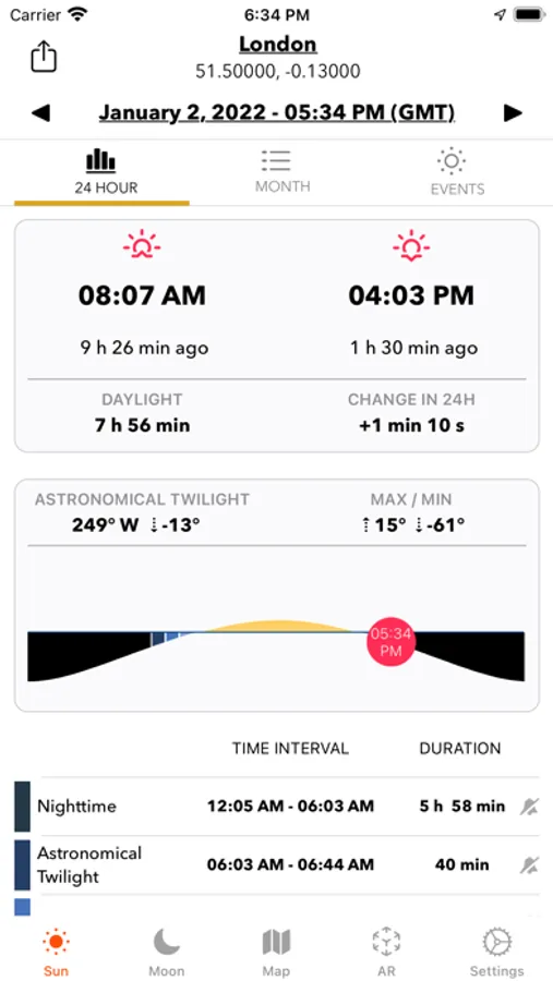 Augmented Reality projection of the position of the sun and moon at your current location.