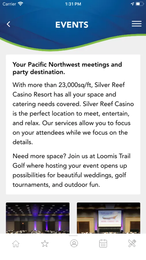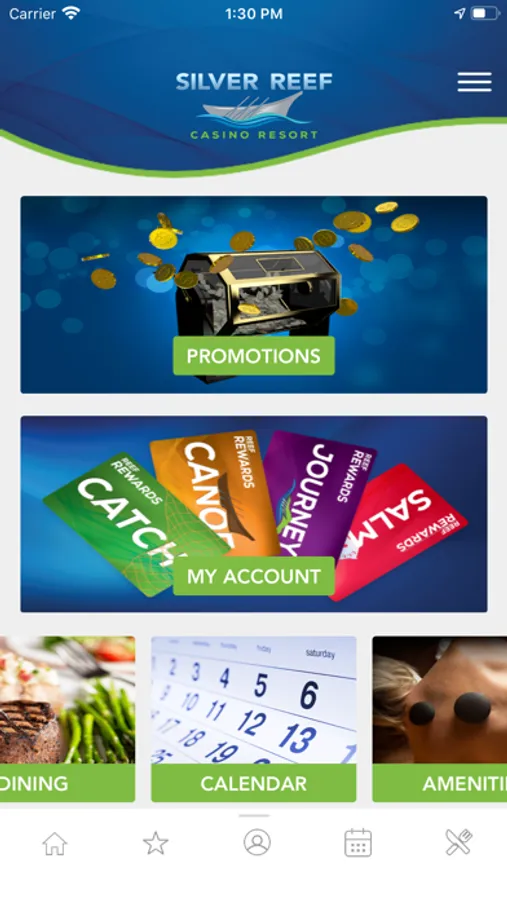 Play, win, and check your Reef Rewards status anywhere. Silver Reef Casino Resort provides Reef Rewards members with the newest promotions, messages, and mobile games directly to their phones. Receive the latest dining menus and hours, book your tee time at Loomis Trail Golf, or schedule a relaxing massage all at the tips of your fingers. The Silver Reef Casino Resort mobile app is a great way to pass the time, stay up to date with your favorite casino, and plan your next weekend getaway.