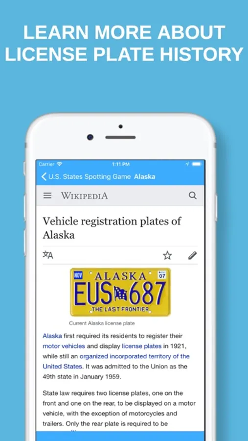 For those of us who are interested in the history behind a particular plates designs, you can also view the Wikipedia article to learn more about each and every states license plate.