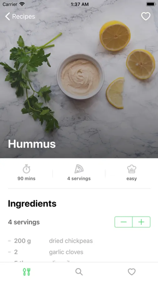 - Need more / less servings? No problem! App automatically re-calculates needed ingredients for you.