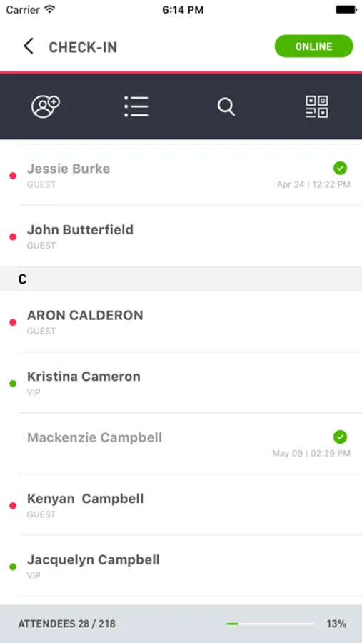 Live Tracking of Check-Ins and Captured Data