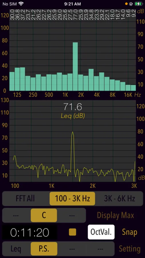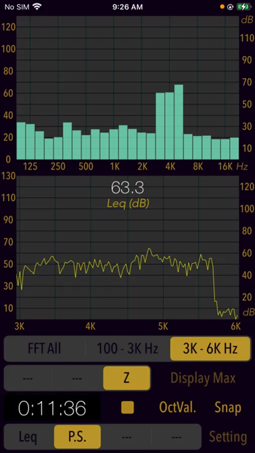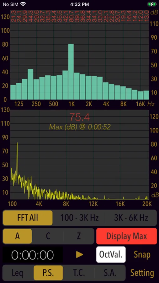 - FFT frequency range settings : 100Hz - 20kHz (FFT All) / 100Hz - 3kHz / 3kHz - 6kHz