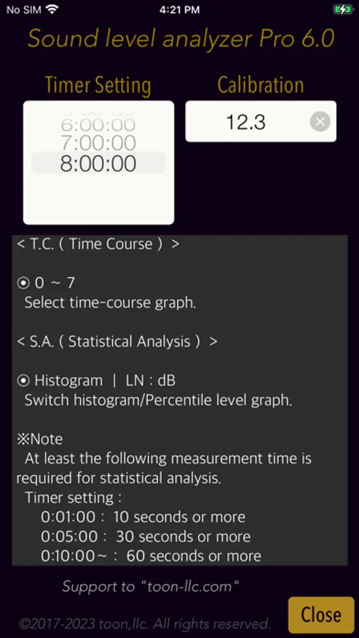 In addition, this app has advanced sound analysis functions that can perform "Power Spectrum Analyzer", "Time Course graph", and "Statistical Analysis (Histogram, Percentile Level)". It can be used to analyze characteristics and trends of occurrence for the noise/sound source.