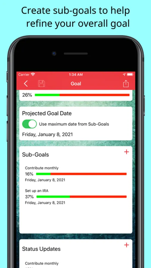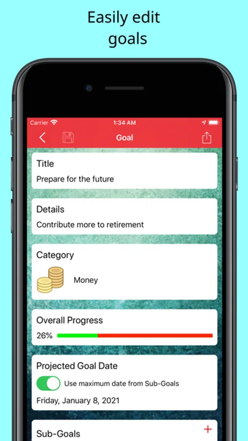 The Personal Goal app also lets you set up sub-goals. This allows you to break down your goal into manageable steps. This app enables you to track your progress for each sub-goal and encourages you to reach your overall goal.