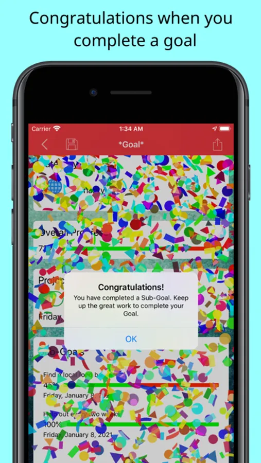 We hope you find this app helpful in supporting your day-to-day activities and welcome your comments and suggestions. Contact Us!Features:- Create personalized goals- Choose from many goal samples- Configure multiple reminders per goal- Create location and calendar reminders- Over 1200 standard background image and color combinations- Use your own photos as the background image- Tag goal with a personalized category image- Choose from over 50 categories tags- Create multiple sub-goals per goal- Track status and progress for each goal or sub-goal- Rebalance the importance of each goal or sub-goal