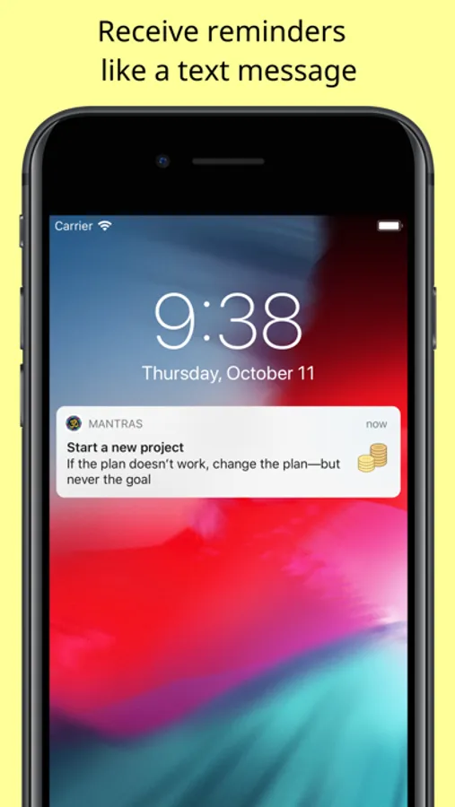 A mantra is a positive phrase or statement that you say to yourself for the purpose of motivation or encouragement. This could be your favorite quote, proverb, spiritual truth or religious saying that motivates and inspires you to be your best self.There are many places to find mantras. Most often, the best mantras are the ones we design for our own personal needs. These are the mantras that will have the greatest impact in your life.Mantras are most impactful when you are reminded on a regular and consistent basis. This could be first thing in the morning to help you start your day or last thing at night reminding you to be present and grateful instead of hurried and stressed.We hope you find this app helpful in supporting your day-to-day activities and welcome your comments and suggestions. Contact Us!Features:- Create personalized mantras- Choose from many mantra samples- Configure multiple reminders per mantra- Create location and calendar reminders- Over 1200 standard background image and color combinations- Use your own photos as the background image- Tag mantras with a personalized category image"- Choose from over 50 category tags
