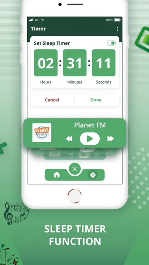 - Provides sleep timer option to turn off the radio playing at the given time.
