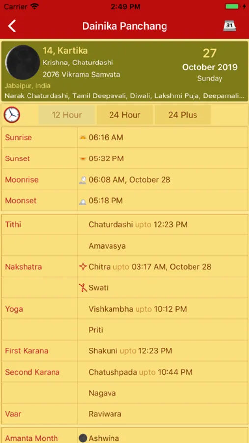 Drik Panchang is one of the most reputed Panchangam available on Internet. It has been made available for iOS devices with similar features and precision as that of www.DrikPanchang.com This native Panchang, which doesn't need Internet connectivity to use, comes with following features