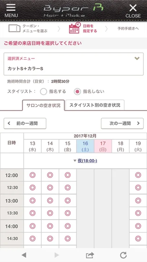 ご希望のメニュー・日時を選んで安心してご予約頂けます。