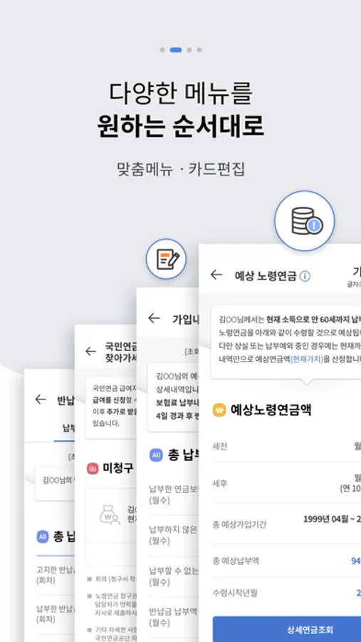 본 앱은 대한민국 국민을 위해 다양한 사회적 위험으로부터 모든 국민을 보호하여 빈곤을 해소하고 국민생활의 질을 향상시키기 위한 사회보장제도 중 하나인 "국민연금"의 대국민 전용 앱입니다.