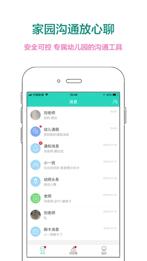 提供了班级通讯录、班级群等完全可控的沟通形式,供老师们与家长进行日常沟通。