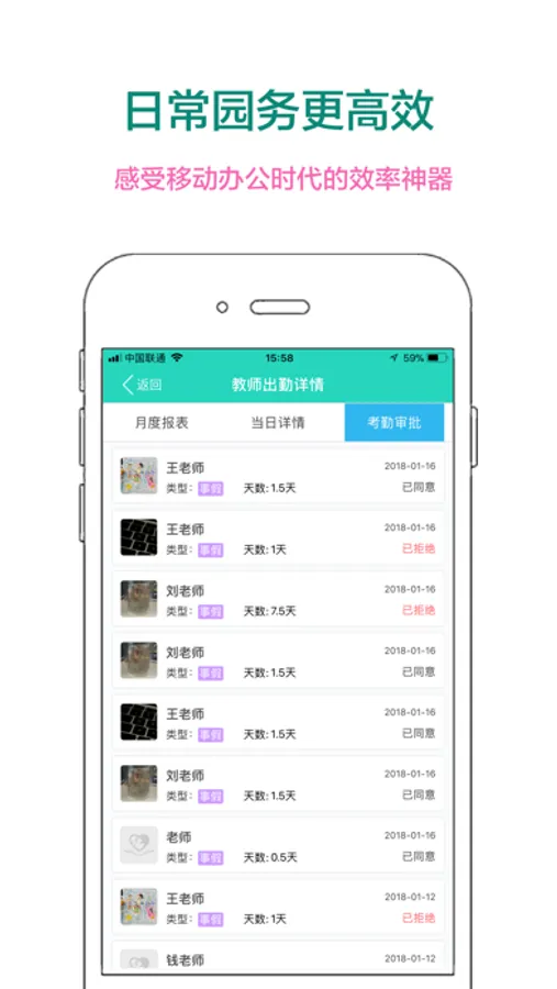 不仅可以群发通知,更可以处理幼儿考勤、教师考勤等工作,移动办公超有效率~