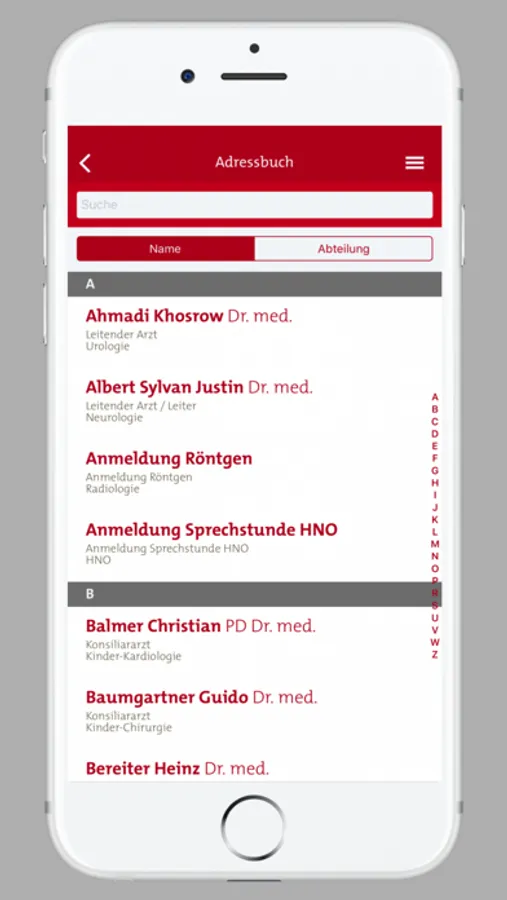Auf einfache Weise können Sie medizinische Ansprechpersonen des Kantonsspitals Graubünden durchsuchen und direkt kontaktieren, sowohl telefonisch, als auch per E-Mail. Kontakte können Sie zu Ihren Favoriten hinzufügen und als Kontakt exportieren.