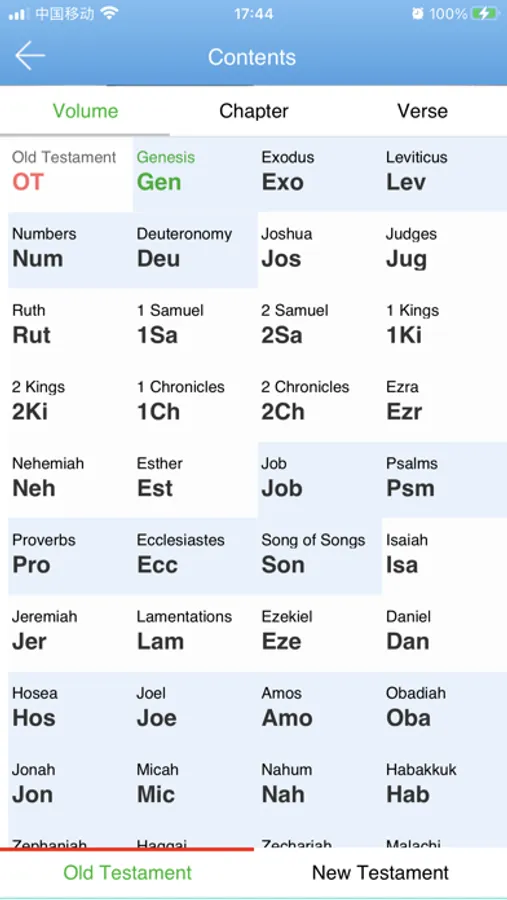 1. Concise and intuitive design interface: In the use of software, we try our best to make it to be concise and simple, but not lack of function. The upper left corner is the book directory. The upper right corner is the reading history. The bottom are respectively full text retrieval, audio Bible, function menu, grace community and exegesis reference.