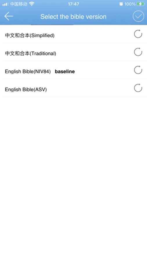 5. Bible version: It has the simplified Chinese version, the traditional Chinese version, the English version ( NIV ) and the English version ( ASV).
