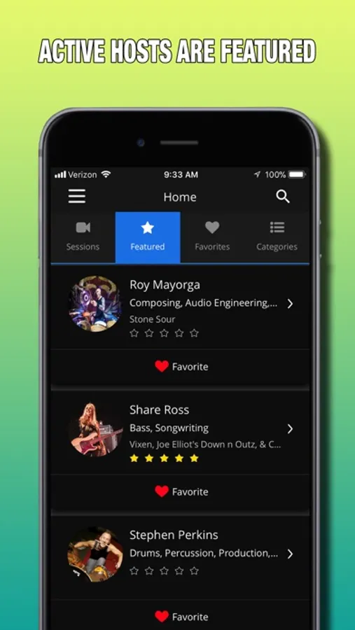 • Search for Hosts by name, skill, keyword or the Categories and Featured tabs and favorite their profile to be notified when they become available.