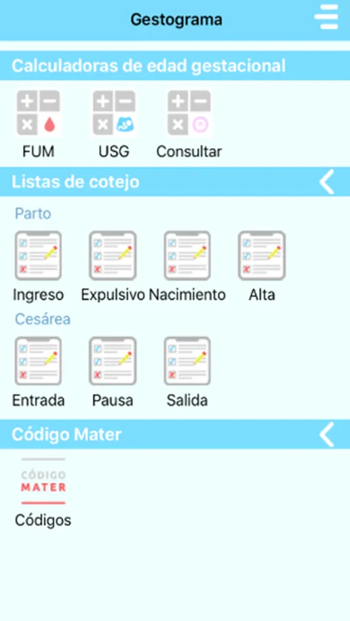Gestograma es una aplicación que brinda varias herramientas para la atención obstétrica, las cuales son: listas de cotejo de los diferentes momentos de parto, información sobre código mater y calculadoras gestacionales.