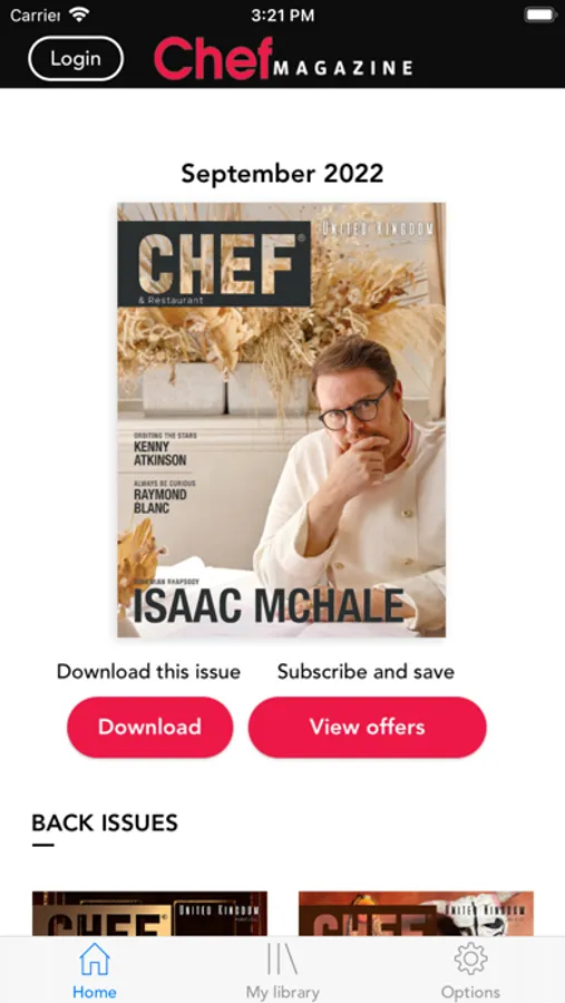 This is a free app download. Within the app users can purchase the current issue and back issues.