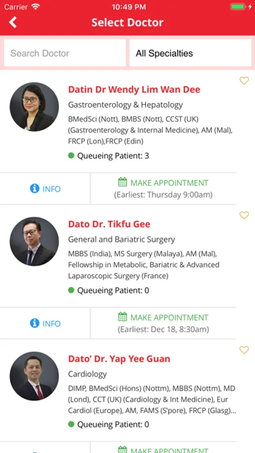 In the app, it allows you to make appointments with our doctors or services easily. You can check the availability, choose your preferred arrival time, and even monitor live queue on your mobile phone.