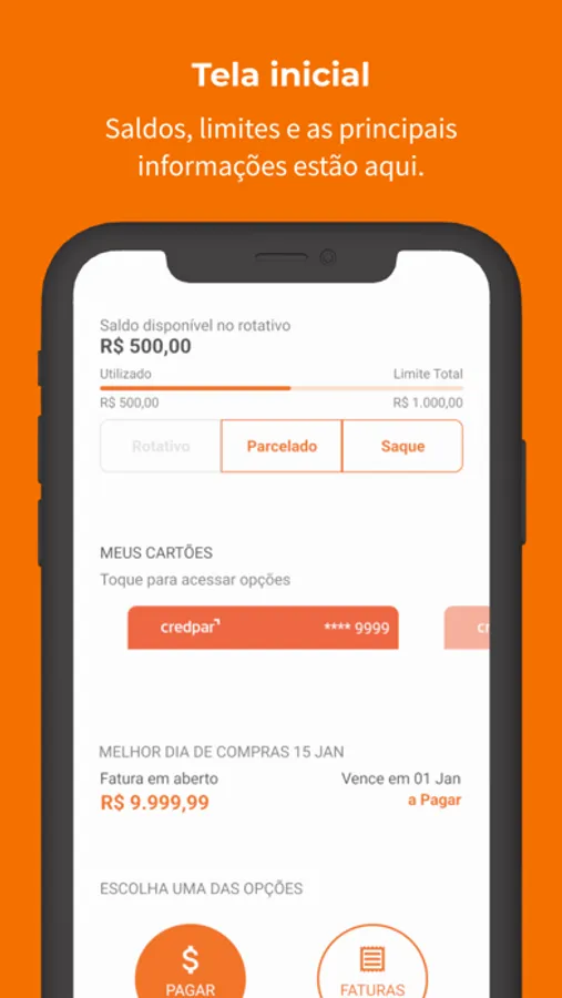 • Visualizar seu saldo disponível para compras no crédito rotativo e parcelado;